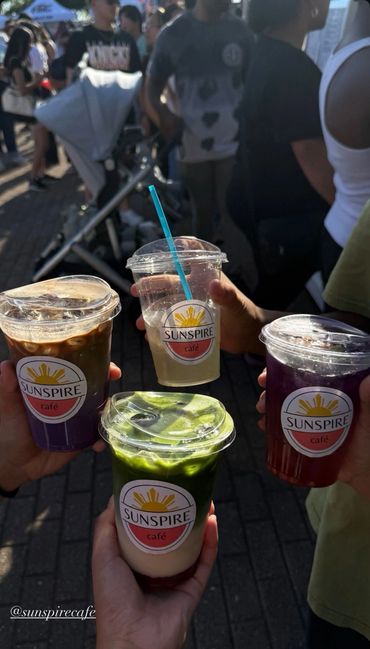 Hiro brings over a decade of experience in coffee and hospitality. He crafts drinks with care — from espresso to matcha, teas, and lemonades — pouring not just coffee, but connection into every cup. Mary has years of customer service and working in the bartending industry and works behind the scenes, managing logistics, bookings, social media, marketing, curating Sunspire Café’s specialty drinks and operations to ensure everything runs smoothly so Hiro can focus on creating memorable experiences through his latte art.